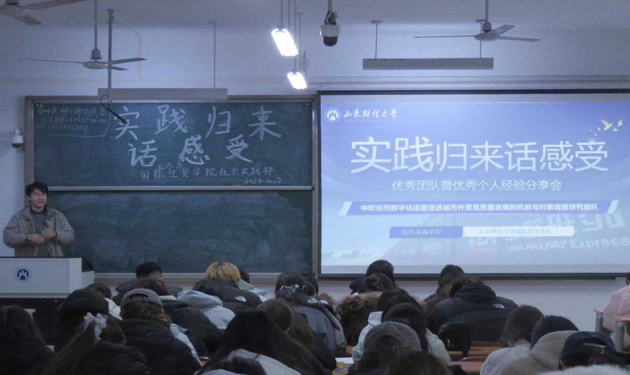 随后,两支社会实践队伍先后分享实践经验。“数翼乘风,智联亚欧:中欧班列数字化运营促进城市外贸高质量发展的机制与对策调查团队”青岛分队成员安睿围绕项目介绍实践调研实践感悟个人寄语四个部分展开分享了团队连续六年深耕中欧班列调研的宝贵经验,安睿在系统宣讲的同时结合了自己在企业调研时的宝贵经历,生动呈现了数字化运营对跨境贸易的赋能效应使在场的同学直观感受到实践的价值,并对跨境贸易创新有了深刻的理解与认识。